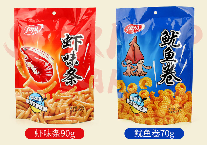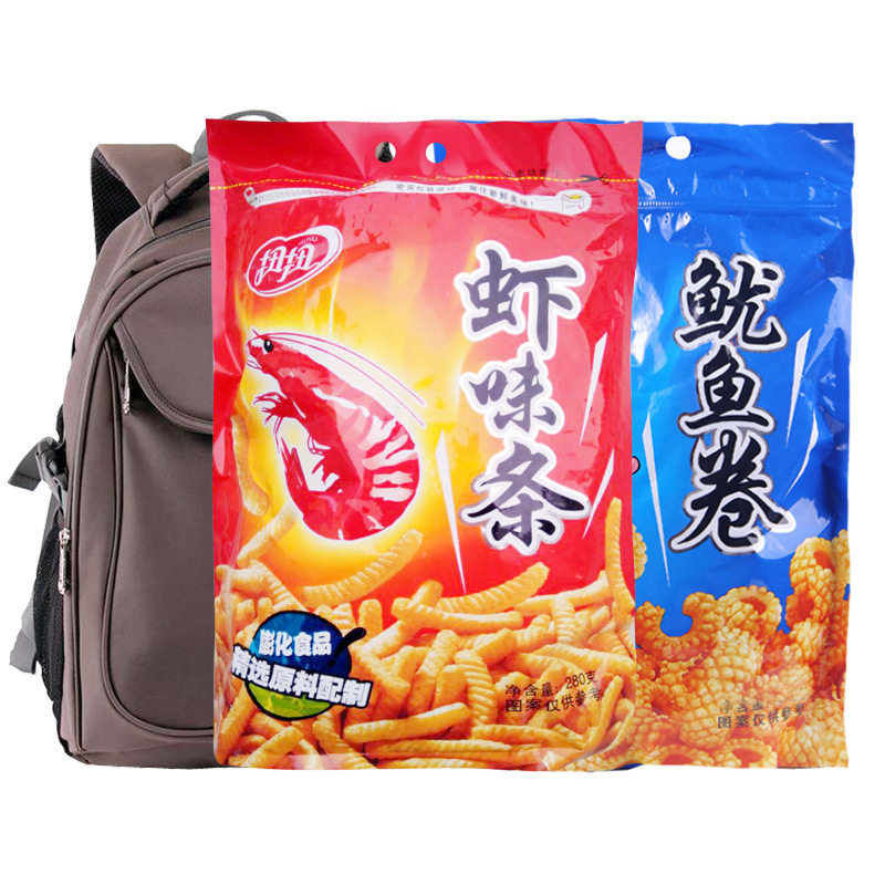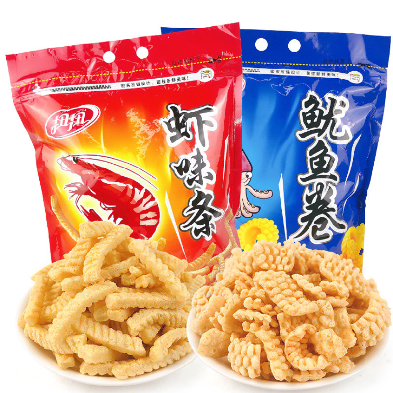 Скрученные креветки, куски креветок из картофельных чипсов кальмары, повседневная закуска с закусочной большой сумкой со старыми закусками