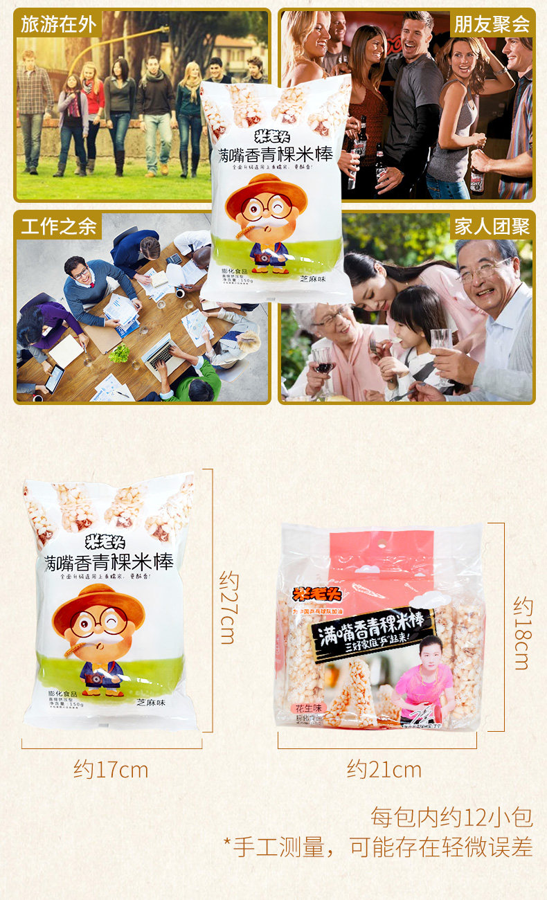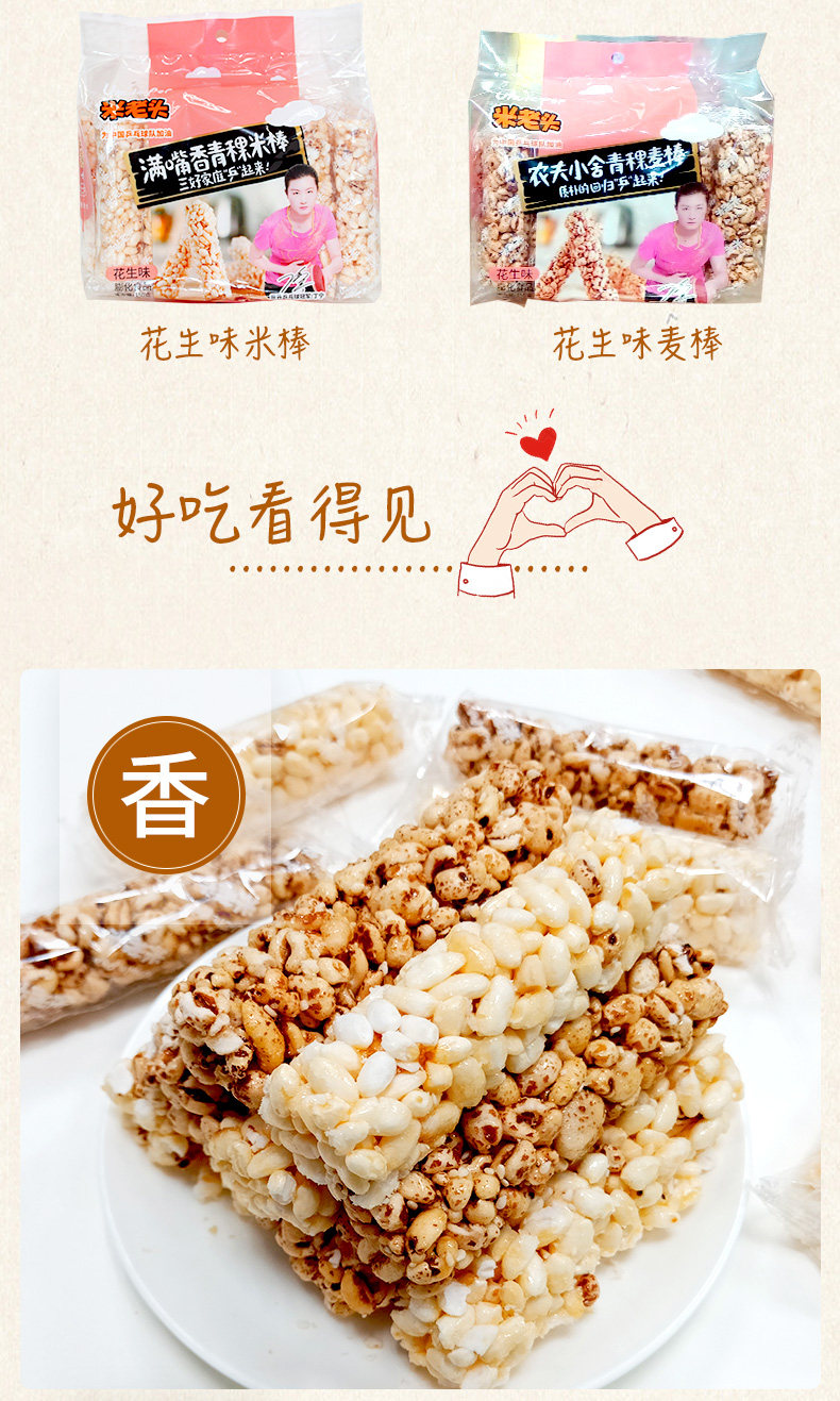 Рисовый старик зеленый рисовый палочка/пшеничная стержня 150 г арахисового арахиса ароматизированное кунжутное вкусный вкусный офис закуски с закусками рис цветочный сахар