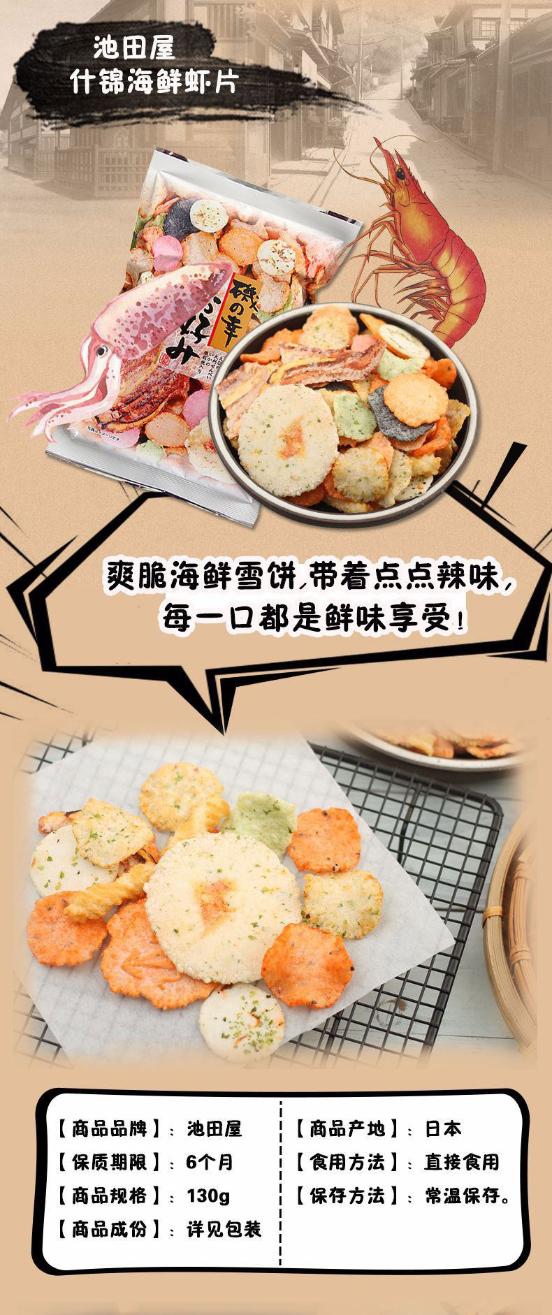 Япония импортированная закуска Икеда Йошико Кодзин Морепродукты Рыбалка сок Сянбей Блин Рис Бисквиты 120 г/сумка