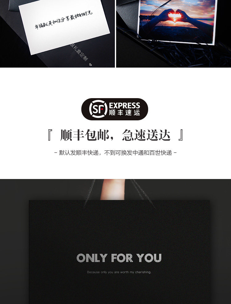 - [SF бесплатная доставка] Только черная подарочная коробка (отправьте вечную розу+поздравительную карту+фото+сумочка)