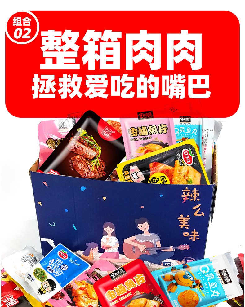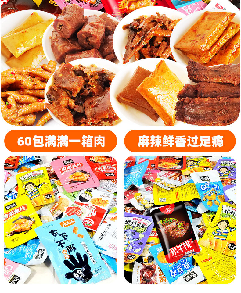 - Комбинация 2 [60 мешков с тушеными закусками+пряная вкусная подарочная коробка]. Экономика подходит для детей, которые едят острой пищи