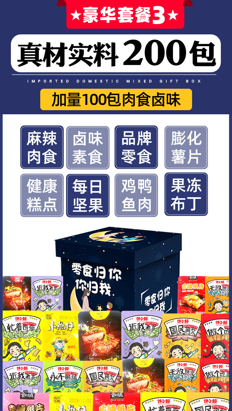 - Роскошь 200 пакетов [купить 1 коробку и получить 1 коробку] Мясовая еда+закуски и закуски бренда и закуски принадлежат вам