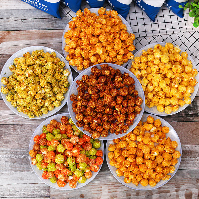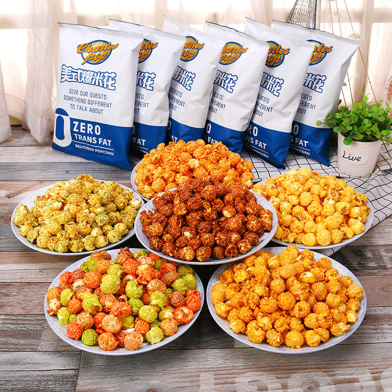 Американский мяч попкорн шесть вкусовых мешков готово к употреблению в попкорне. Обычная драма с закусочной едой