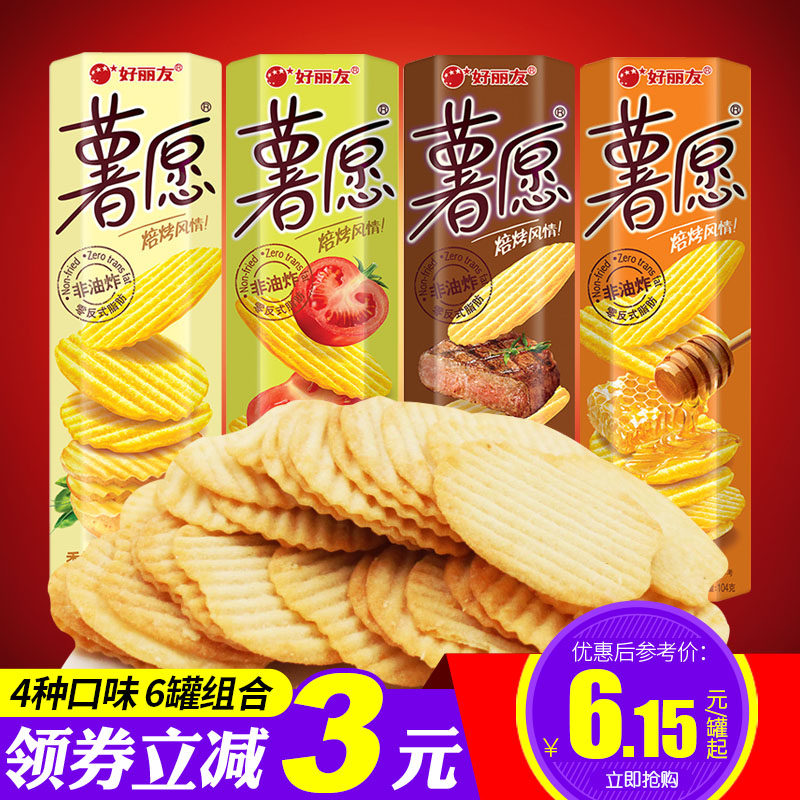 Hao liyou Картофель желание не -фридные картофельные чипсы 104G*6 коробка медовый кобель коров