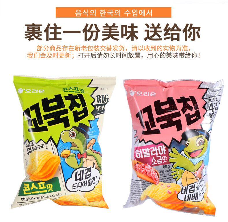 Корейская еда импортируется хорошо, черепаха хрустящая сумка 80 г, установлена в ароматных волнах, волны в волнах, грубые зерновые закуски