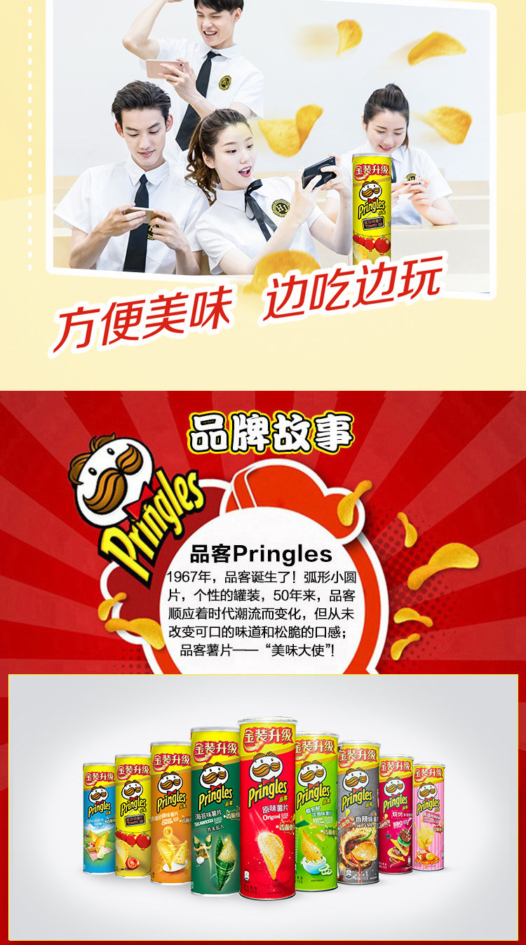 Pringles/品客 Картофельные чипсы оригинальные пирамиды луковые аромат томатный вкус картофельные чипсы 110 г*3 баррелей комбинированных закусок