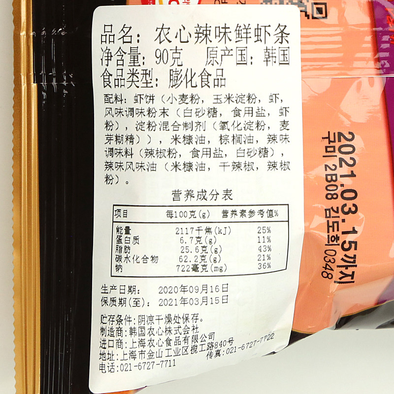 Nongxin Spicy Flavor Shrimp Strip 90G Сумки для Южной Кореи импортированная пышная офисная досуга погоня за драмой ностальгическая закуска еды