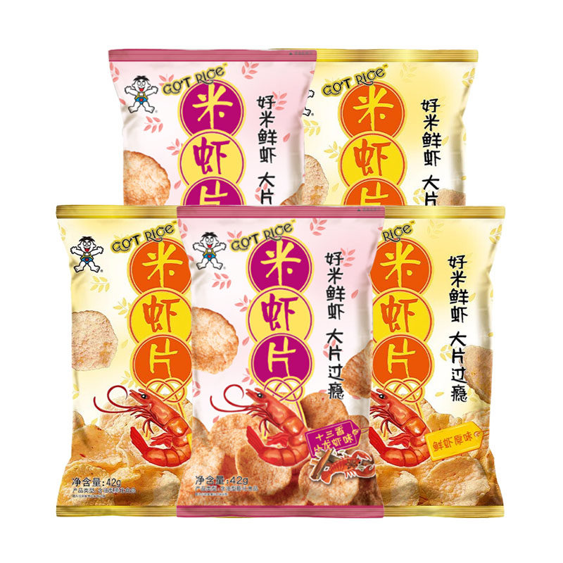 旺旺 Рисовая пленка креветок 42G*5 пакетов свежих креветок и картофельных чипсов повседневные закуски, закусочные, оригинальный вкус тринадцати аромата ладан