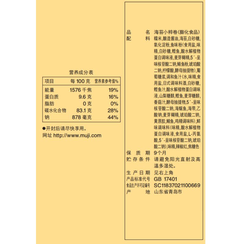 Muji Muji морские водоросли маленький угловой рулон