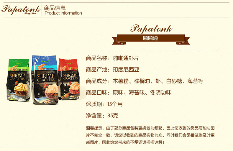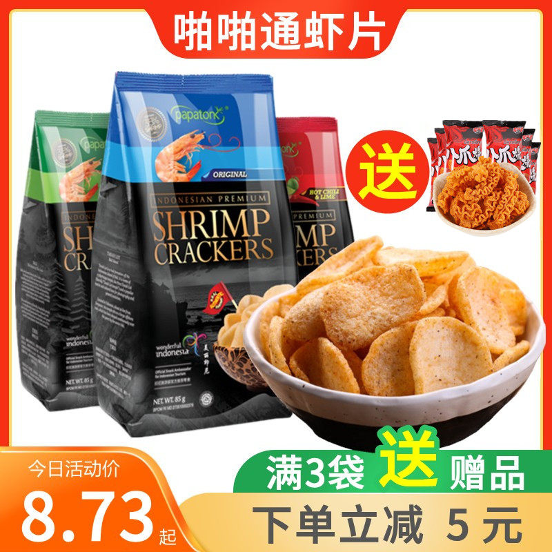 Импортированные из Индонезии чипсы из креветок папатонк, 85 г, картофельные чипсы, оригинальные закуски из морских водорослей Tom Yum Kung