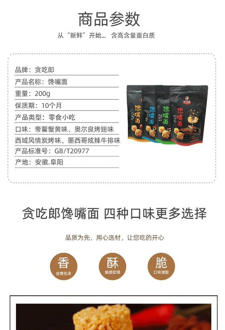 | Вкус: | 200 г/сумка (аромат стейка), 200 г/сумка (крабовый вкус Roe), 200 г/сумка (жареный углерод, 200 г/сумка (на гриле аромат крыла) |