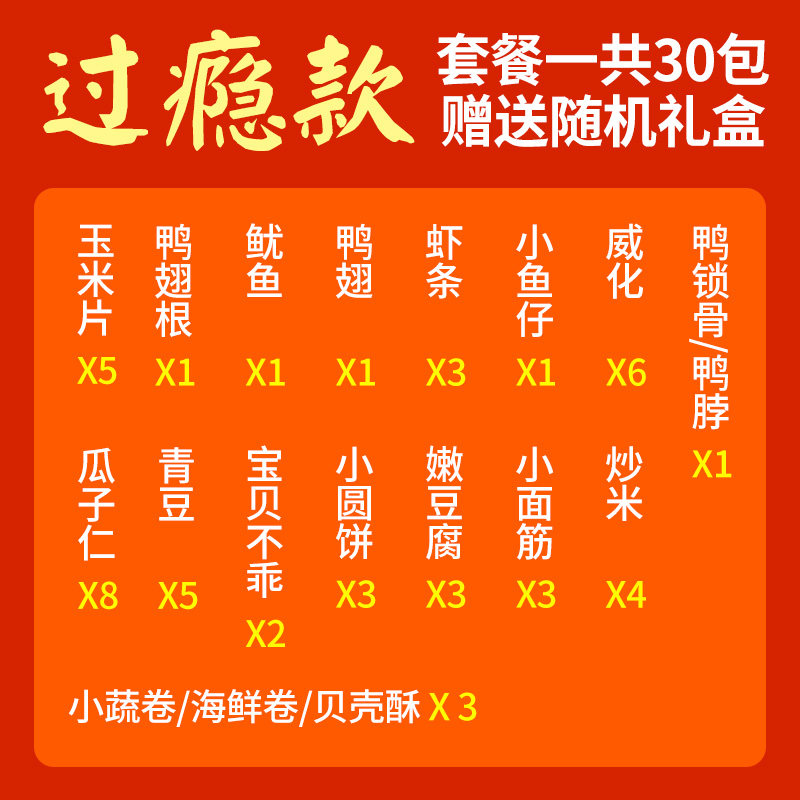 | Вкус: | Упаковка 1 — приятная упаковка] 50 упаковок, около 870 г [Подарочная коробка выбирается случайным образом., Набор 2 высококачественных продуктов питания] 30 упаковок, около 380 г., Три комплексных обеда] 50 упаковок, около 870 г [случайная подарочная коробка], Пакет четвертый] Подарочный пакет Golden Mill Snack 30 упаковок, около 380 г, Legend of Dongting】Острая + острая нежная рыба 30 упаковок |