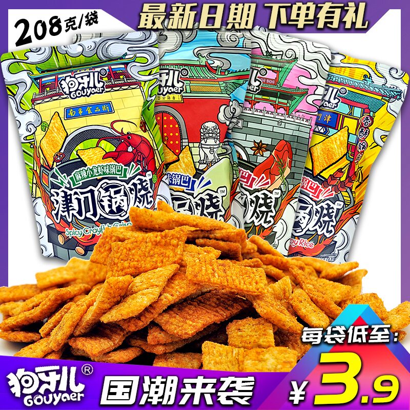 Douya Erjin Gate Pot Crystal Хрустящие рисовые закуски с пряные на пару соленые яичные желток Corluster 208G*2 пакеты