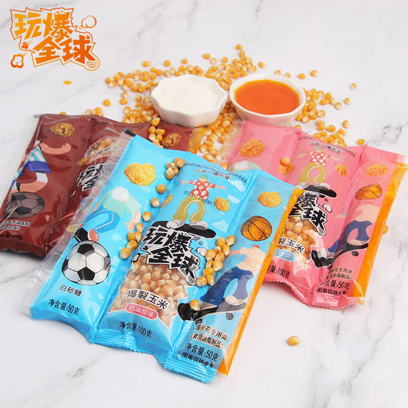 Играя на глобальном попкорне три -в одном шоколадном вкусе, масло, сахар, кукурузные трубы, рисовые цветы