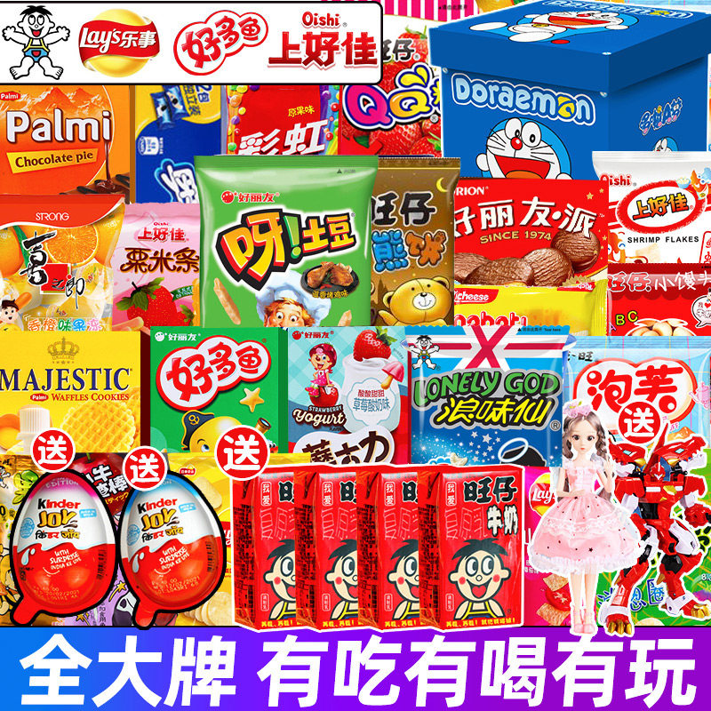 Подарочный пакет новогодних закусок для детей, целая коробка гигантских питательных и полезных снеков, в подарок на день рождения любимой девушке.