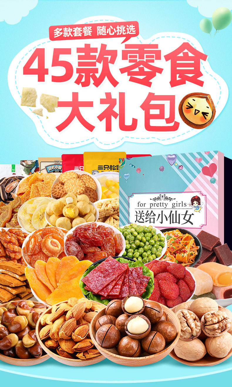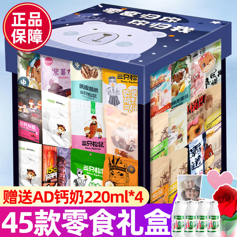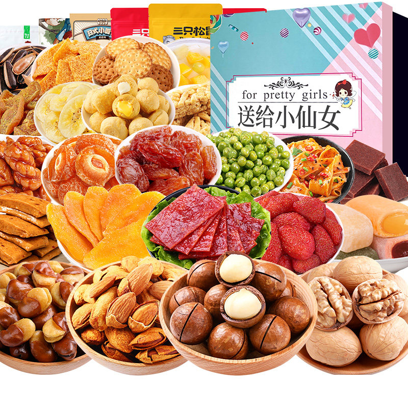 Три подарочных пакета с закусками белки дают подруге интернет -знаменитости разорвать повседневную еду Daquan Foods, чтобы решить голодную коробку ночью
