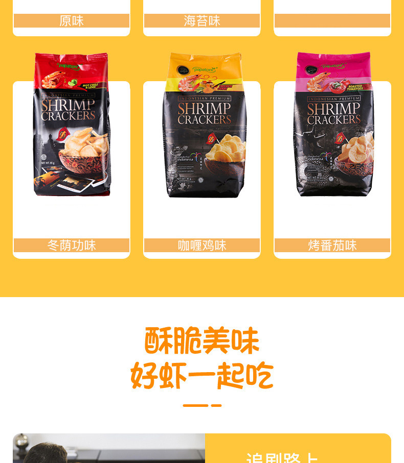 Индонезия импортированная поп -кусочки креветок с пыхтными картофельными чипсами повседневные закуски с закусками Оригинальный вкусный вкусный вкус томатный вкус 85 г