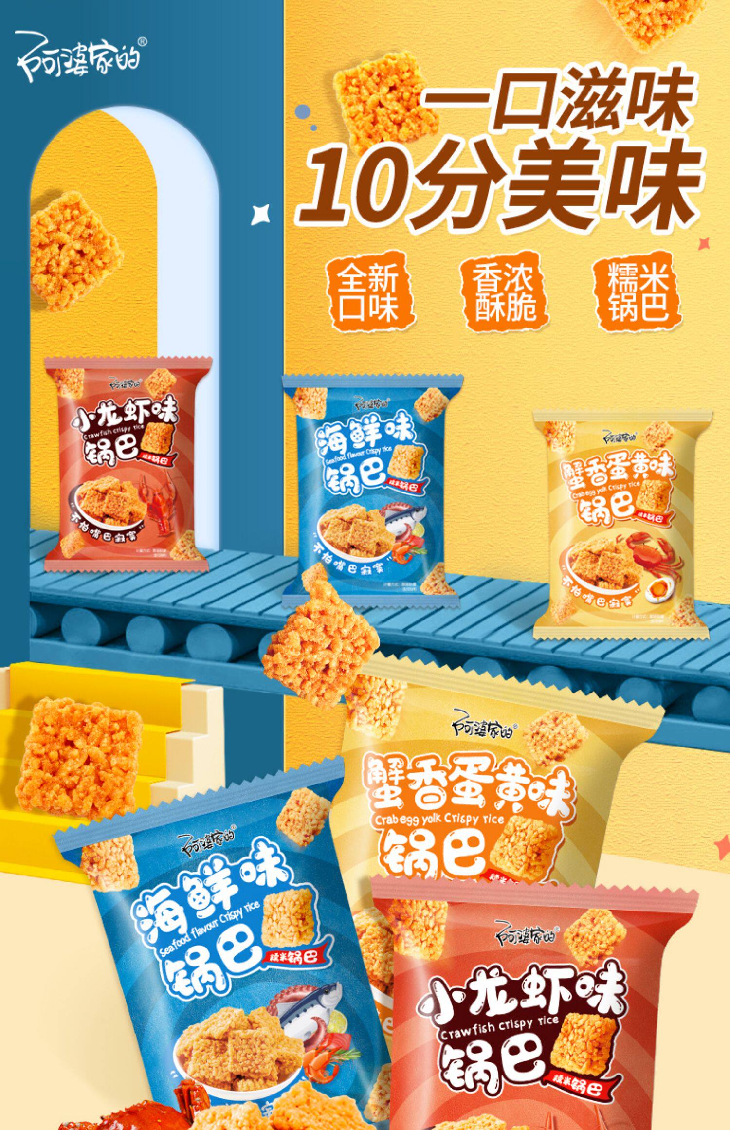 [Full Box Instant] Бабушка крабов -ароматный яичный желток со вкусом морепродукты клейкий рисовый горшок 3 кг целой коробки оптом