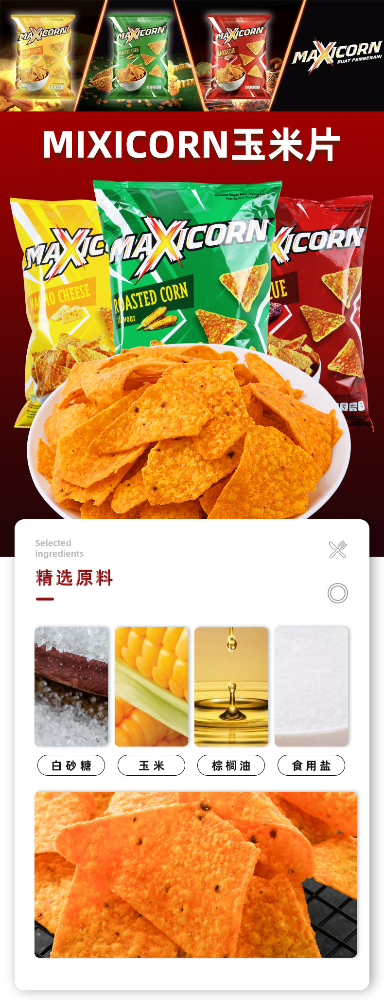 Индонезия импортированная кукурузная таблетка Maxicorn с сыром, ароматизированные с закусками и картофельными чипсами