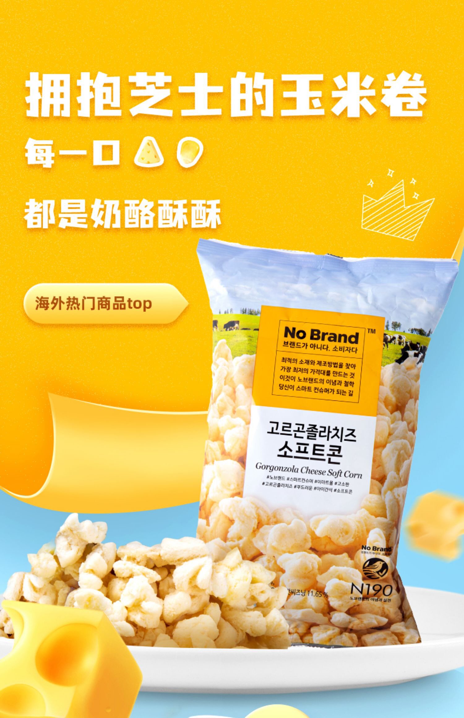 Южная Корея импортировала кукурузная батончик Nobrand 145G/Pugo Noboolgoszola попкорн. Случайные закуски