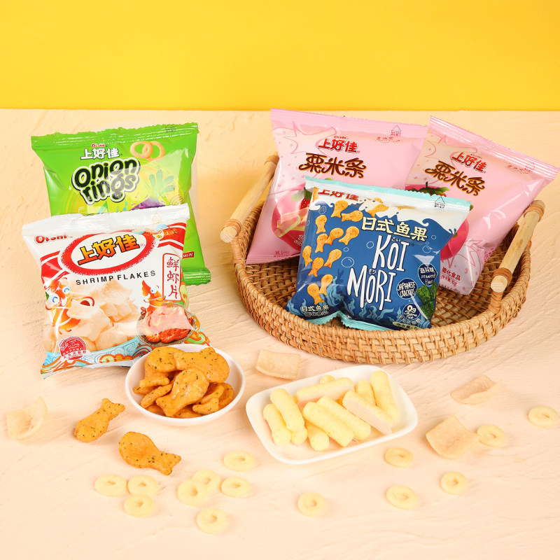 Хорошие свежие куски картофельных чипсов, картофельные чипсы лук, японская рыба и фрукты вкусные маленькие закуски, целая коробка, пышная пищевая упаковка