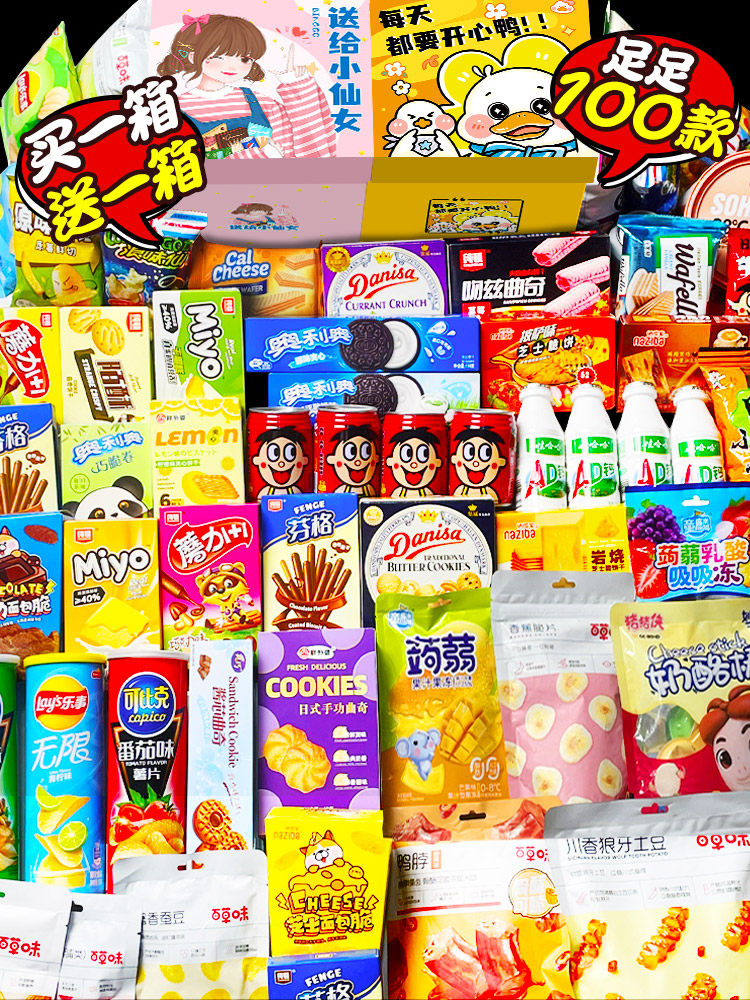 - 1. Подарочная коробка Happy Duck [Купите одну коробку и получите две коробки], всего 100 упаковок фирменных закусок.