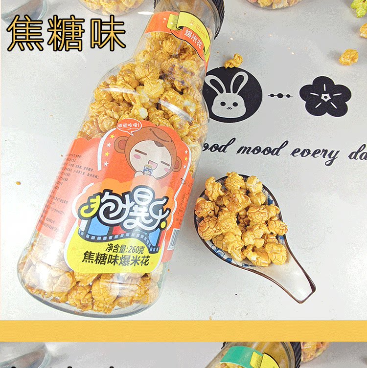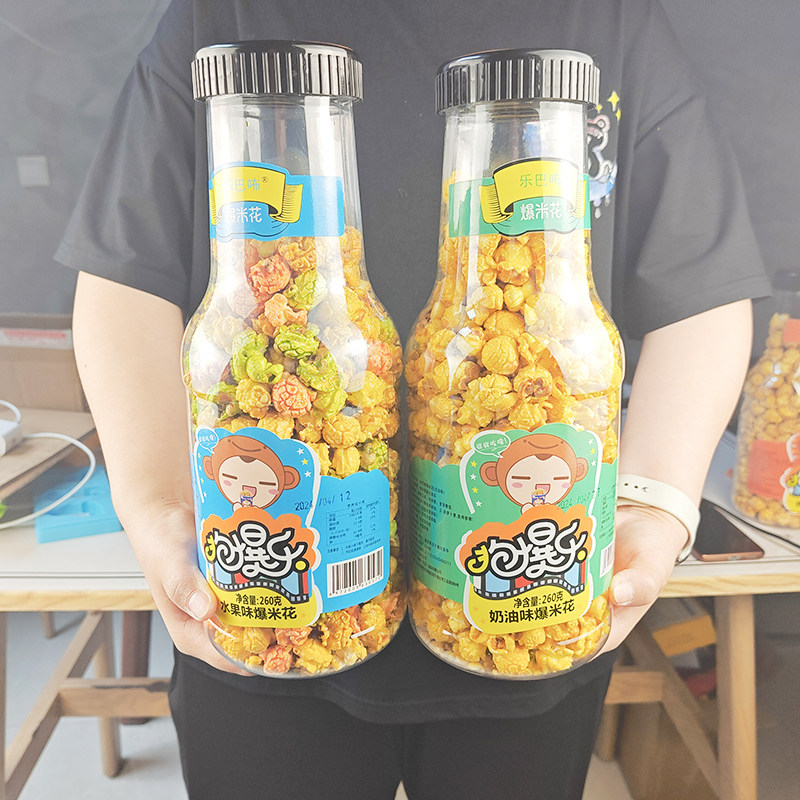 Интернет -знаменитость попкорна закуски и закуски большие бутылки и большой карамельный кремовый фруктовый вкус Дети 260G