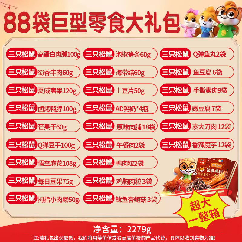 Гигантская подарочная коробка с тремя белками, полная коробка для подарка на день рождения подруги, чтобы удовлетворить вашу тягу к закускам и подарочной коробке с закусками