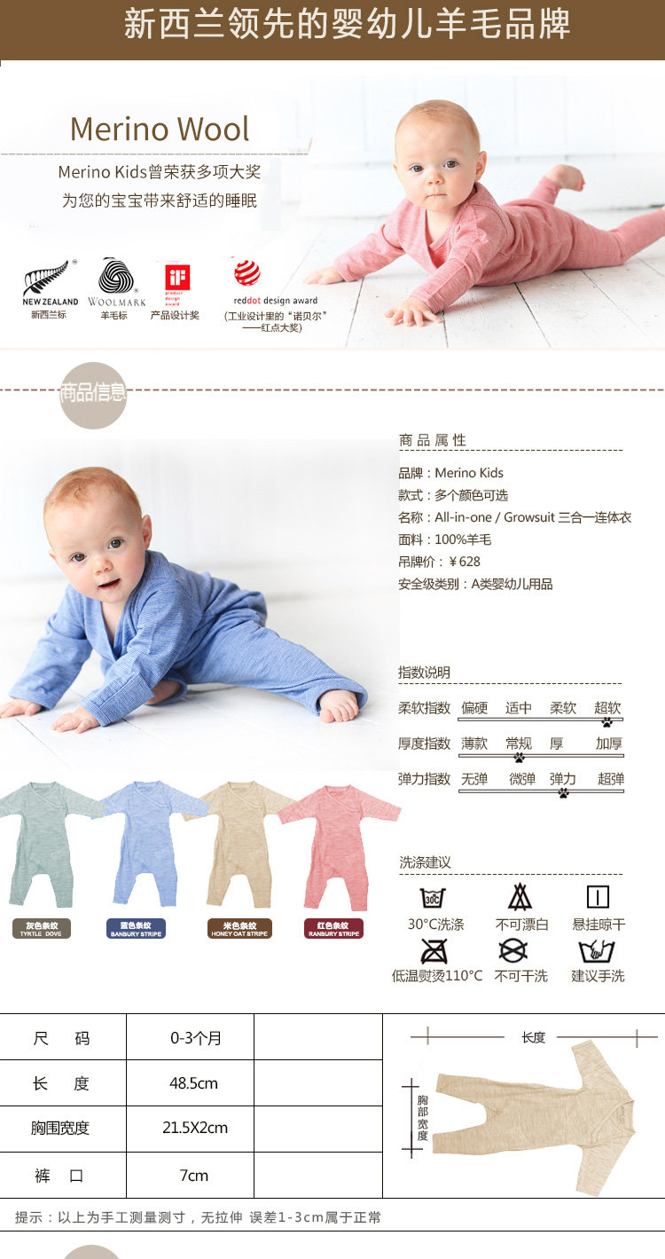 Новая Зеландия Merino Kids All-in-One / Growsuit Sanheyi One Wool Connect