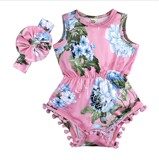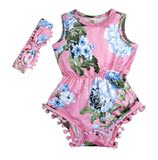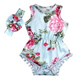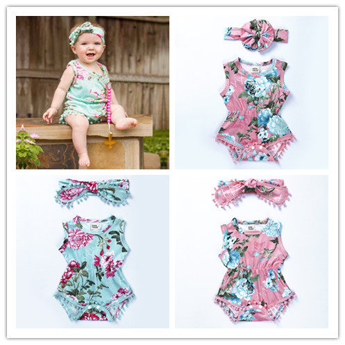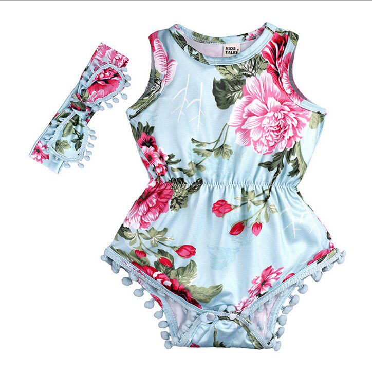 Брендовое детское боди для девочек без рукавов, повязка на голову, европейский стиль, в цветочек