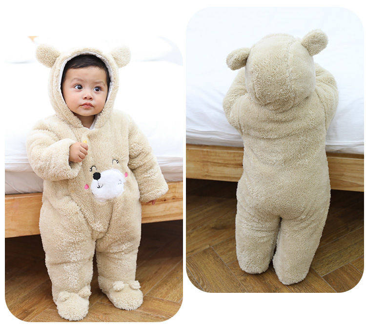 Детское коралловое бархатное демисезонное милое стеганое боди с капюшоном для новорожденных, увеличенная толщина