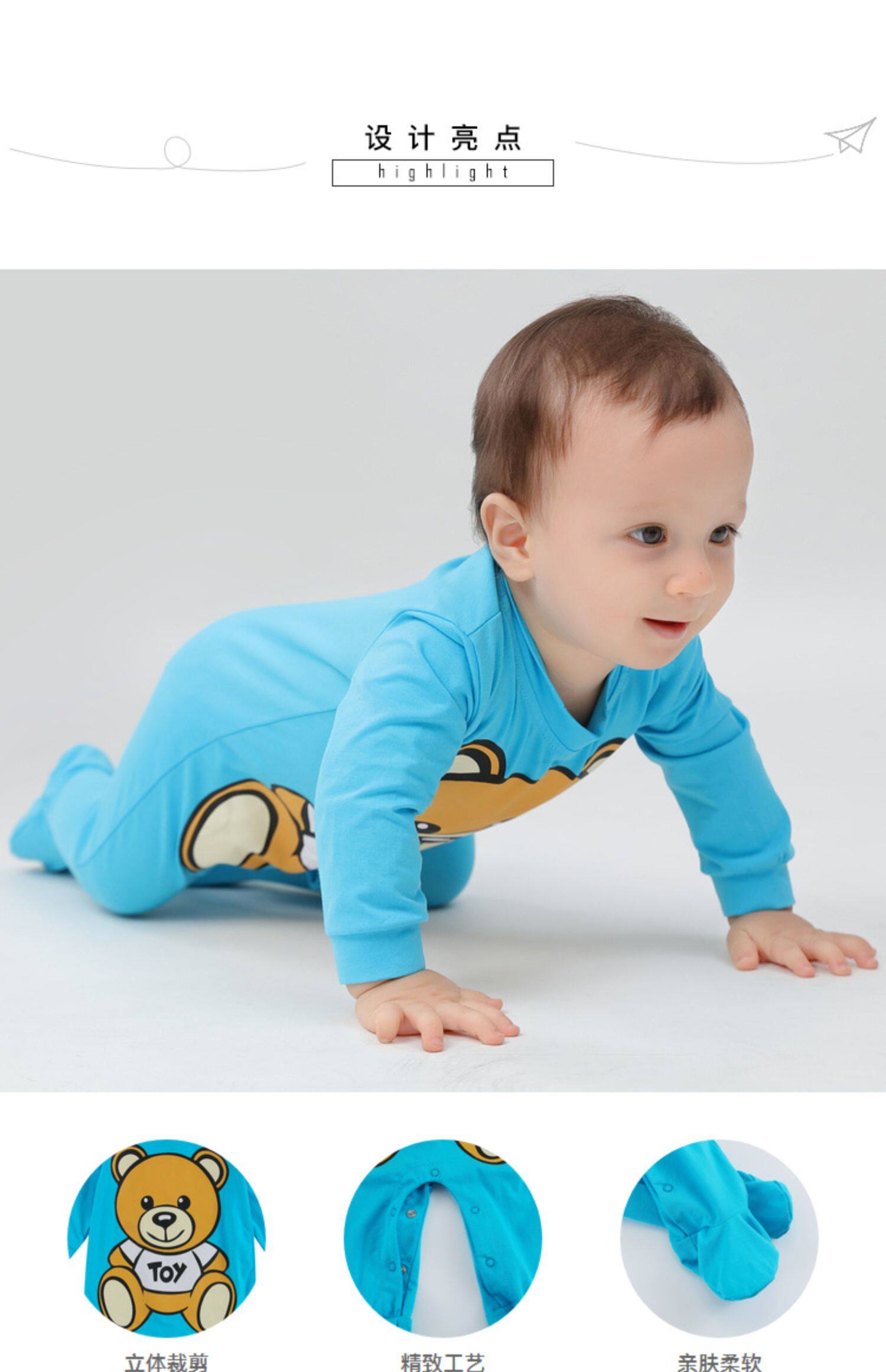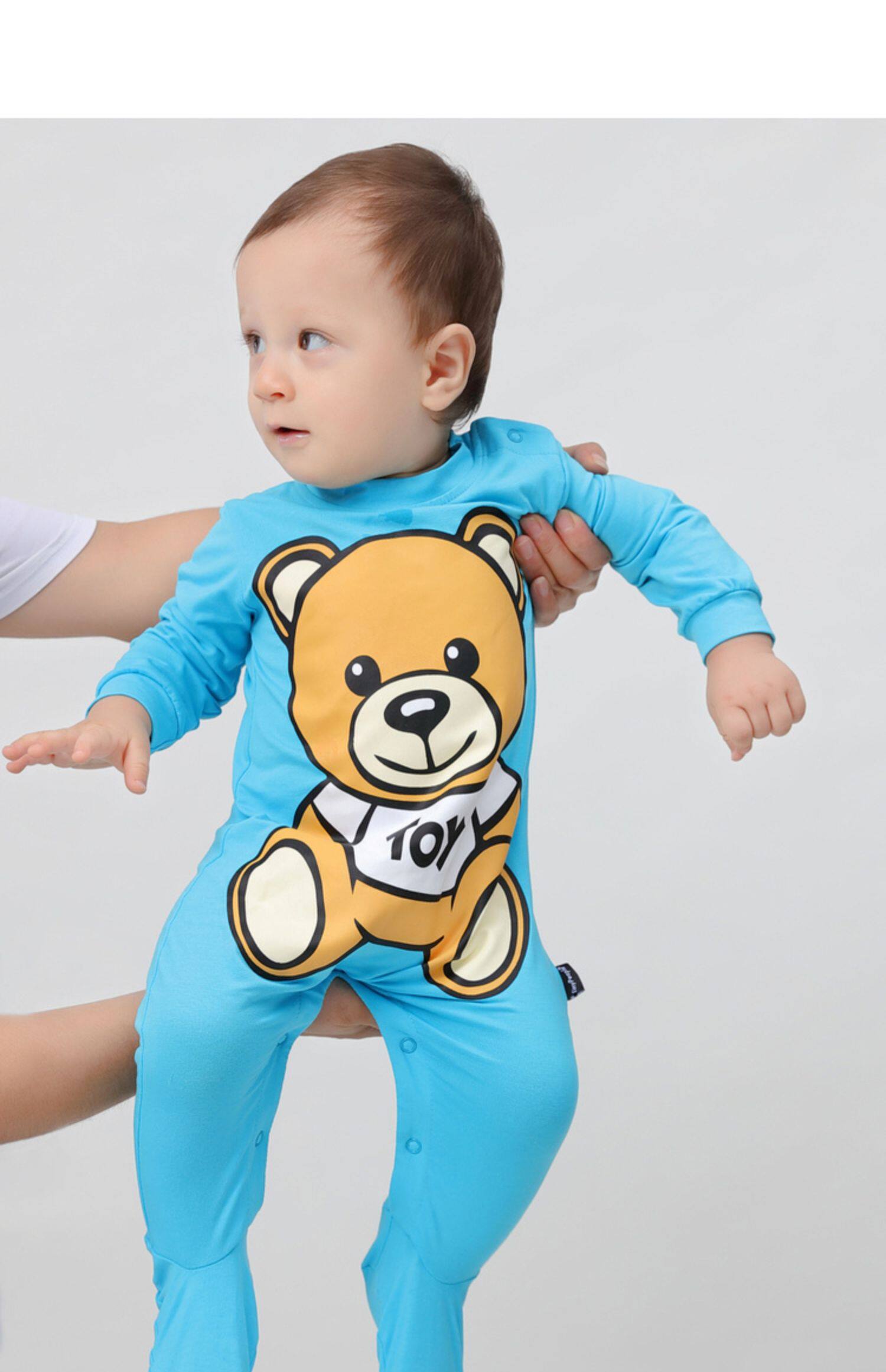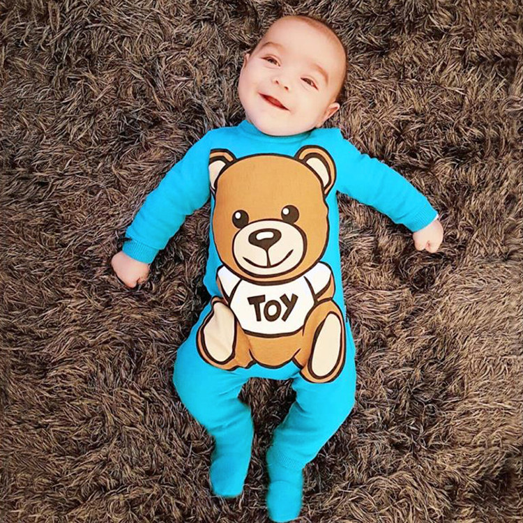 Брендовое рубиновое детское осеннее хлопковое боди, европейский стиль, с медвежатами, популярно в интернете, в западном стиле