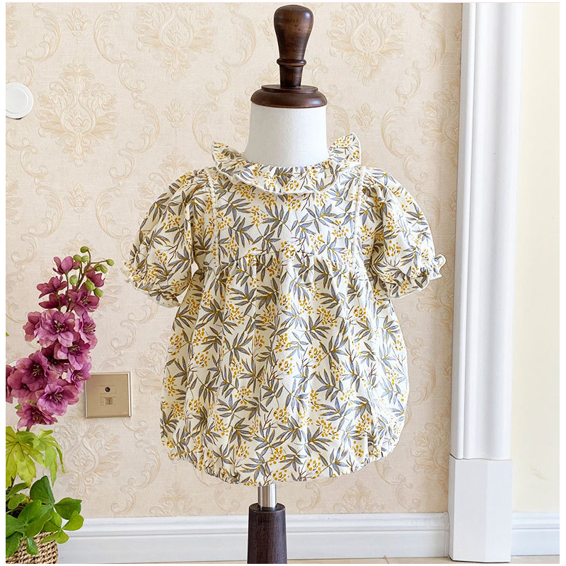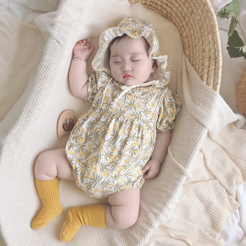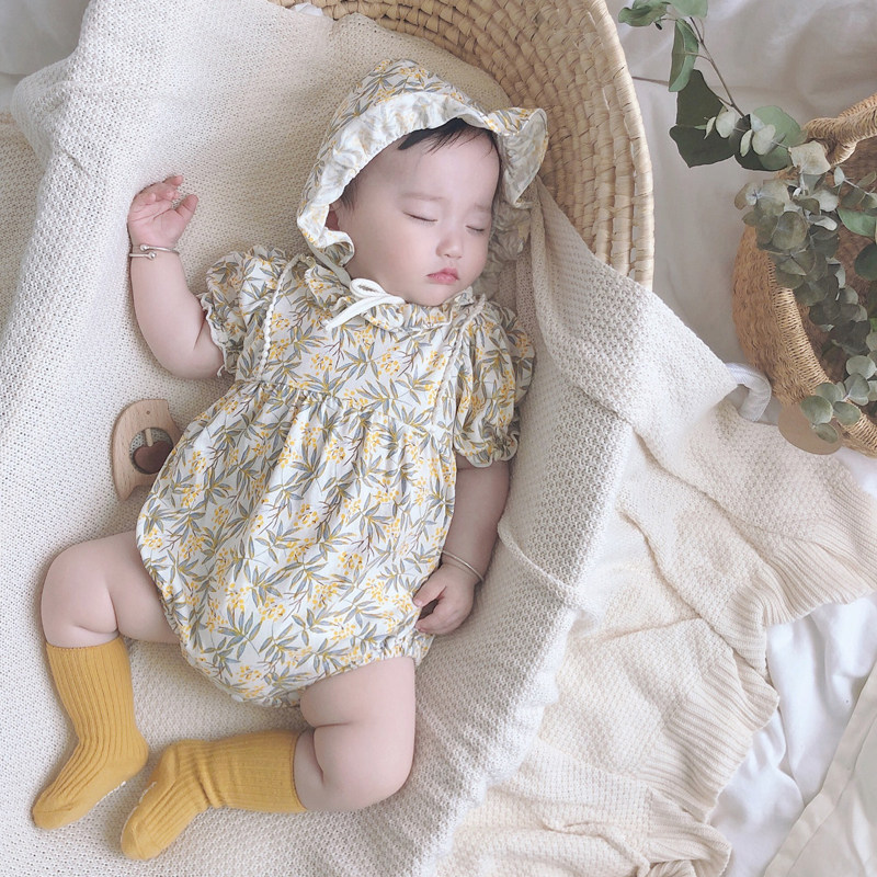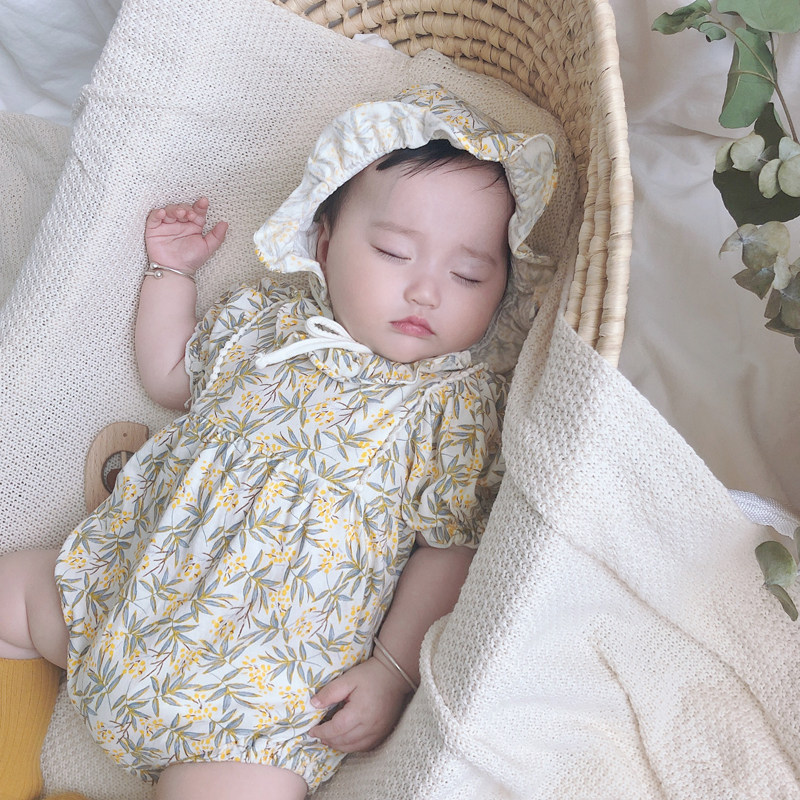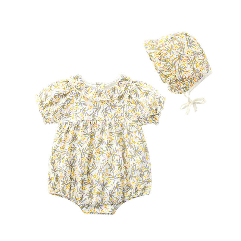 Брендовое летнее детское хлопковое боди для новорожденных, в корейском стиле, цветочный принт, короткий рукав