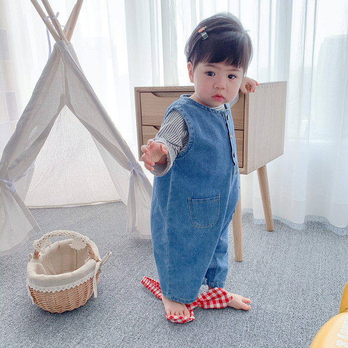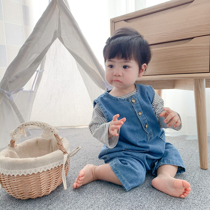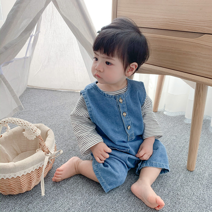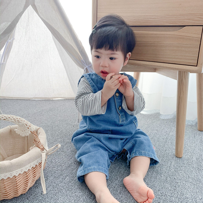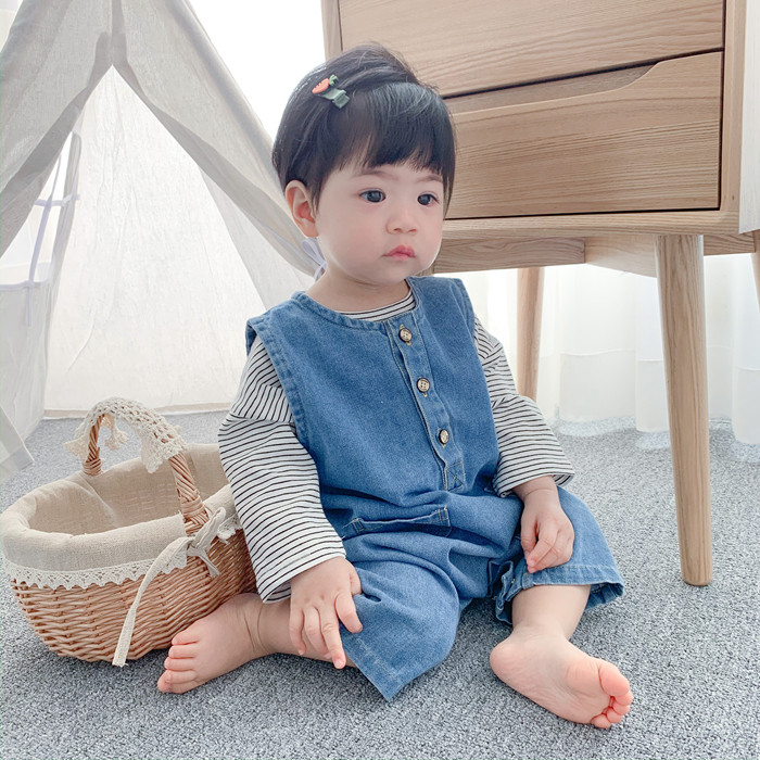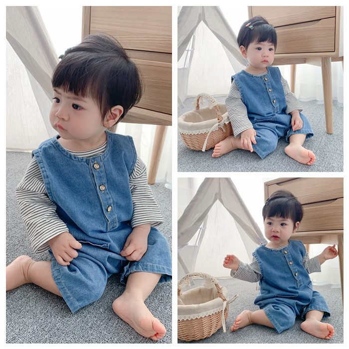 Брендовое детское джинсовое осеннее боди для выхода на улицу, в западном стиле