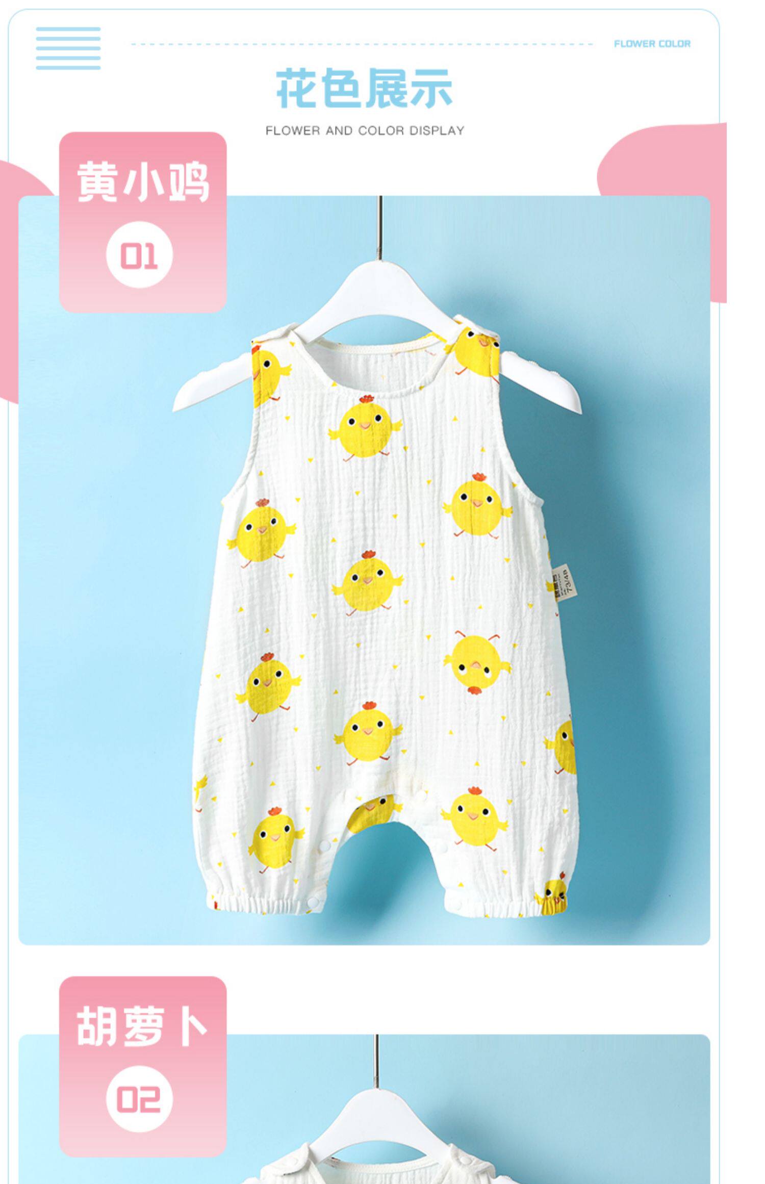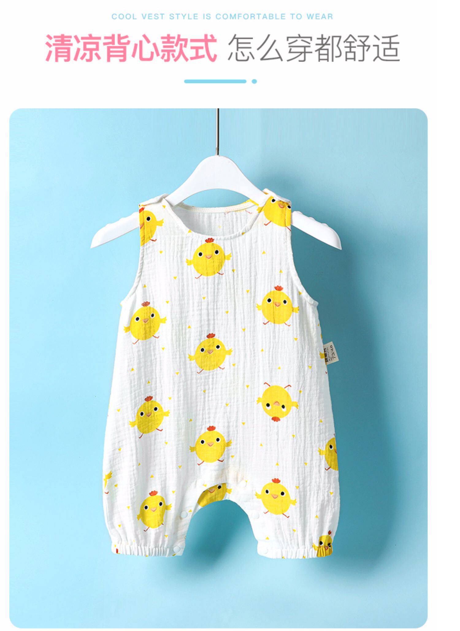 棉寓言 Хлопковое марлевое детское тонкое летнее боди для новорожденных без рукавов подходит для мужчин и женщин для девочек