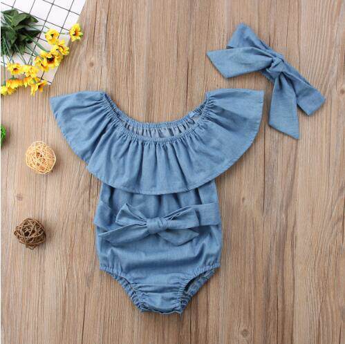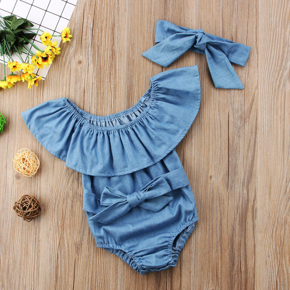 Джинсовое боди для новорожденных для девочек, открытые плечи