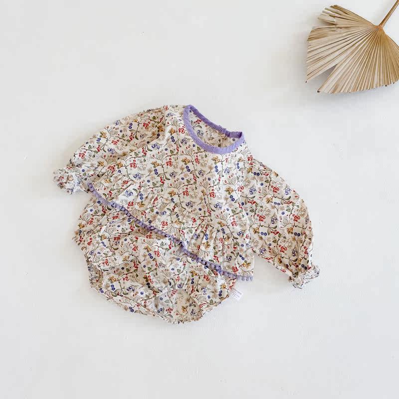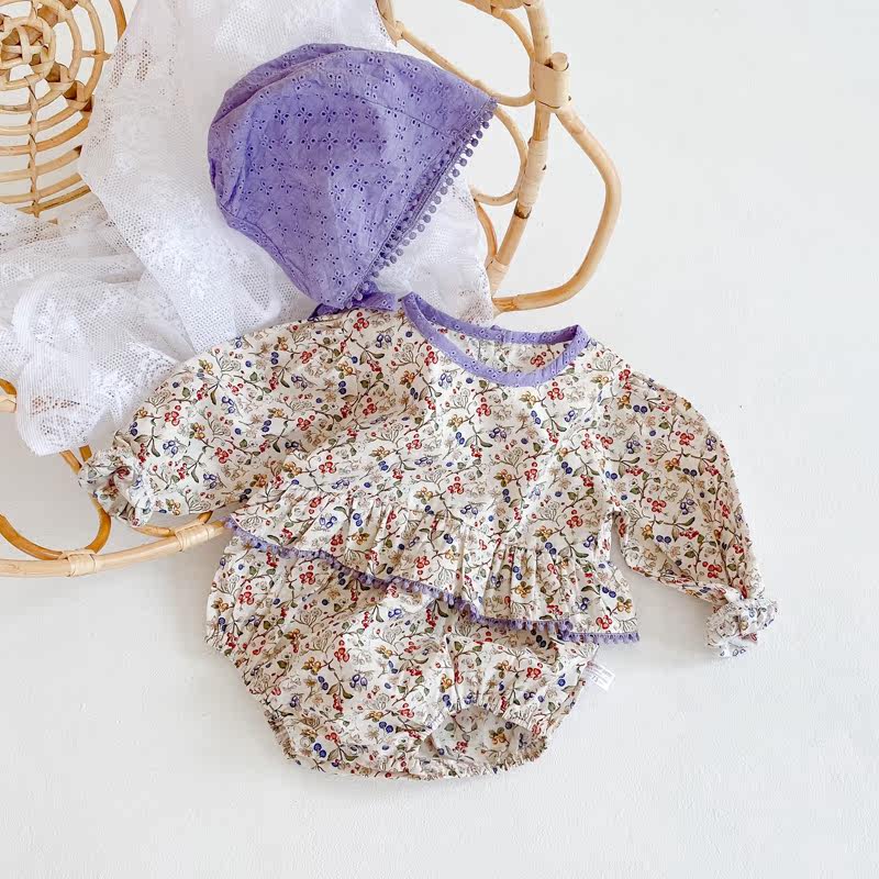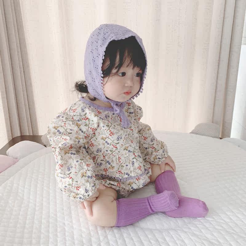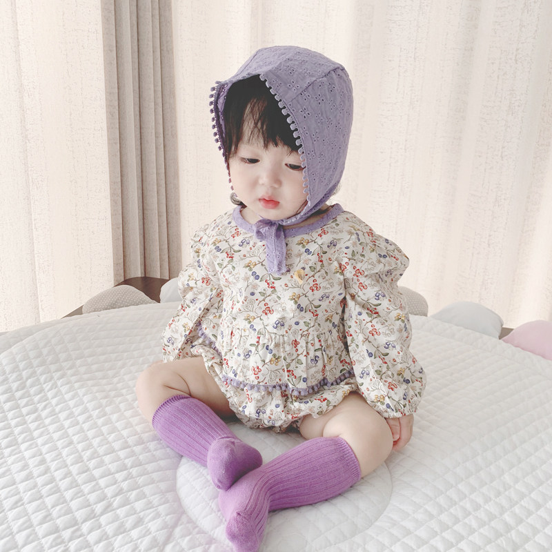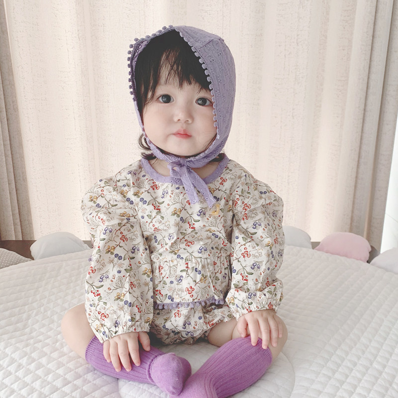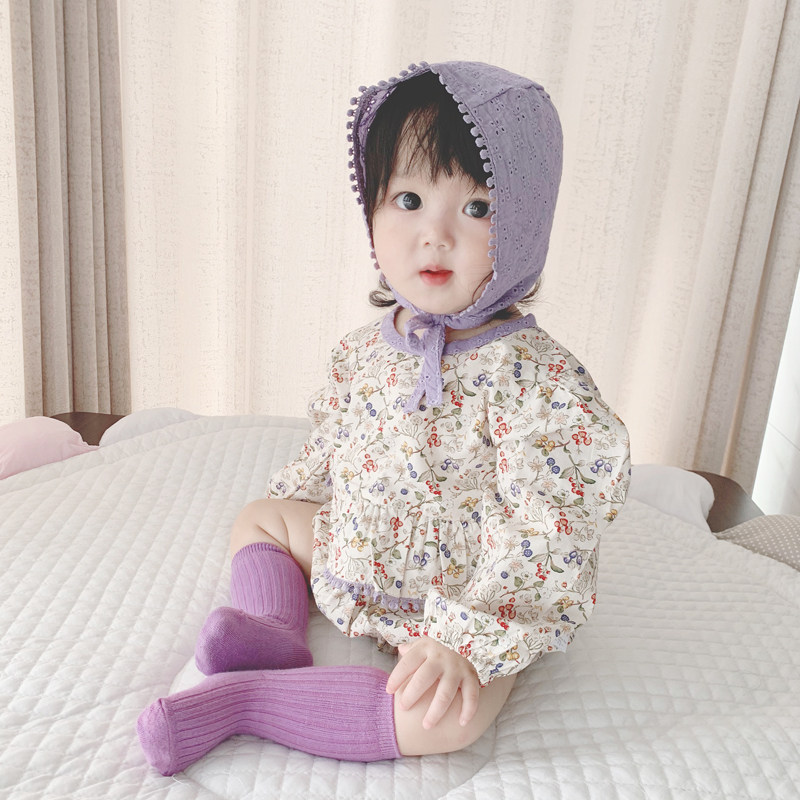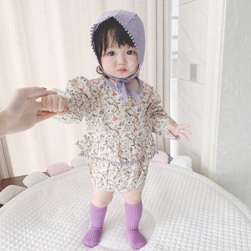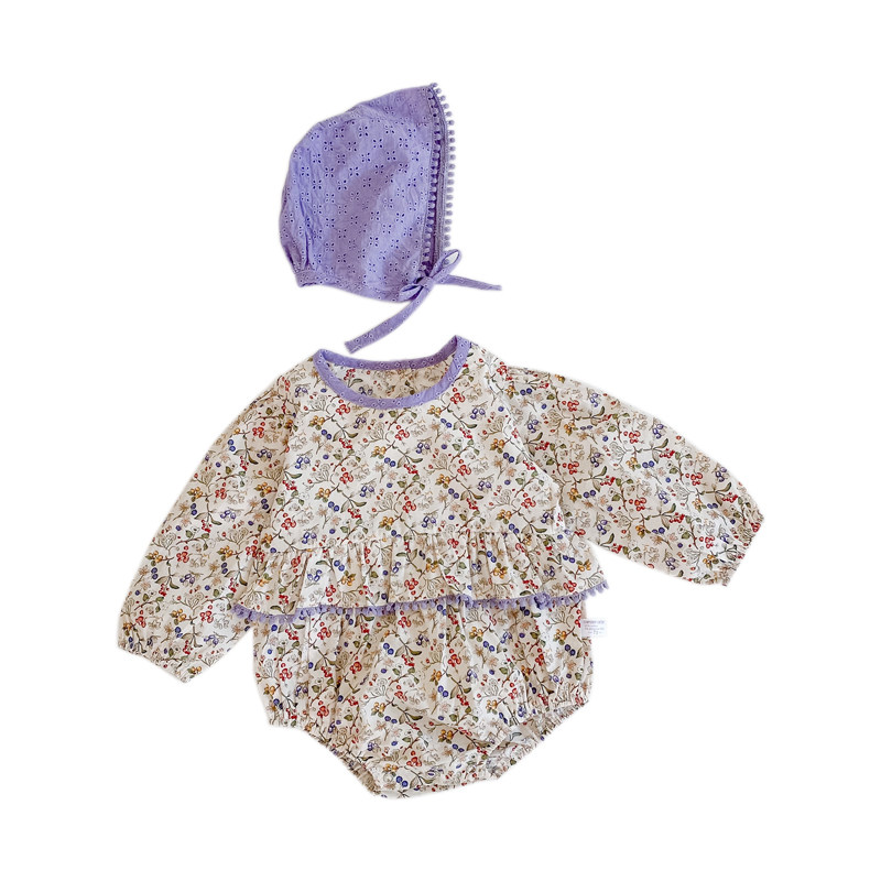 Брендовый осенний детский комбинезон, детское боди, шапка, в корейском стиле, в западном стиле, цветочный принт