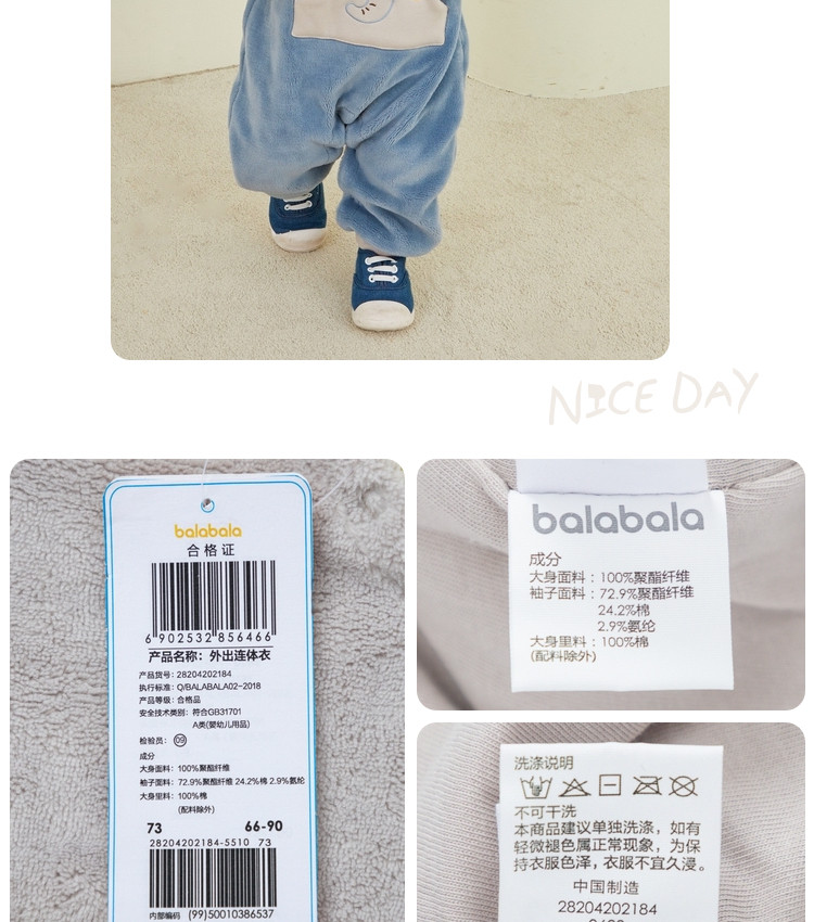 巴拉巴拉 Детский пуховик, комбинезон для выхода на улицу, демисезонное утепленное боди, термобелье, увеличенная толщина
