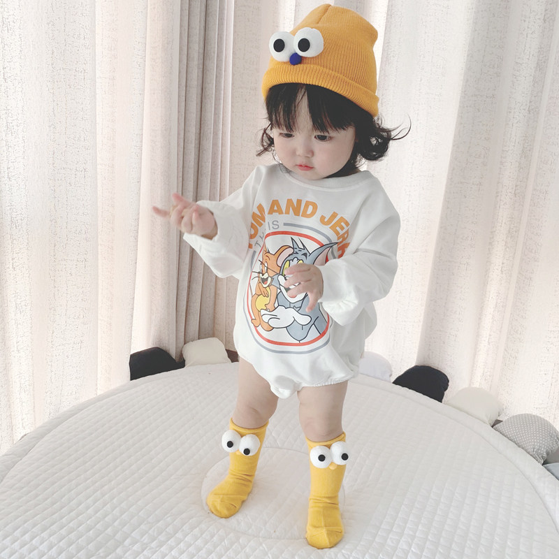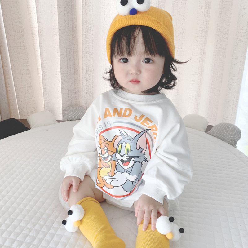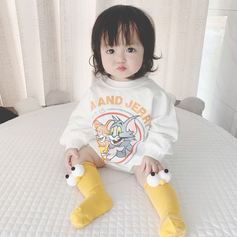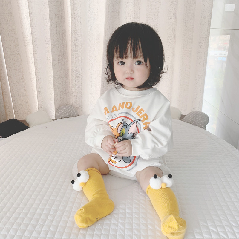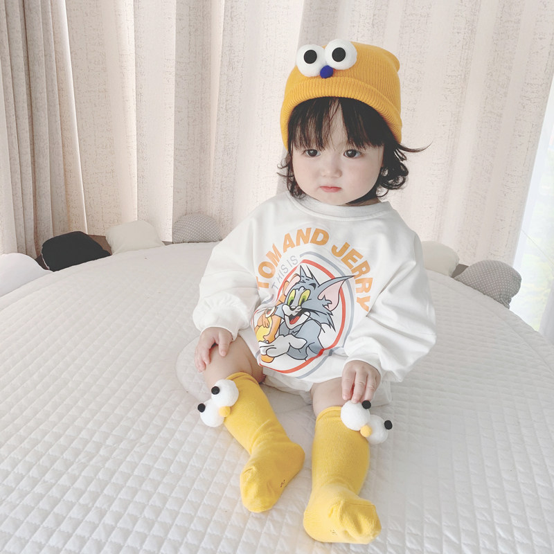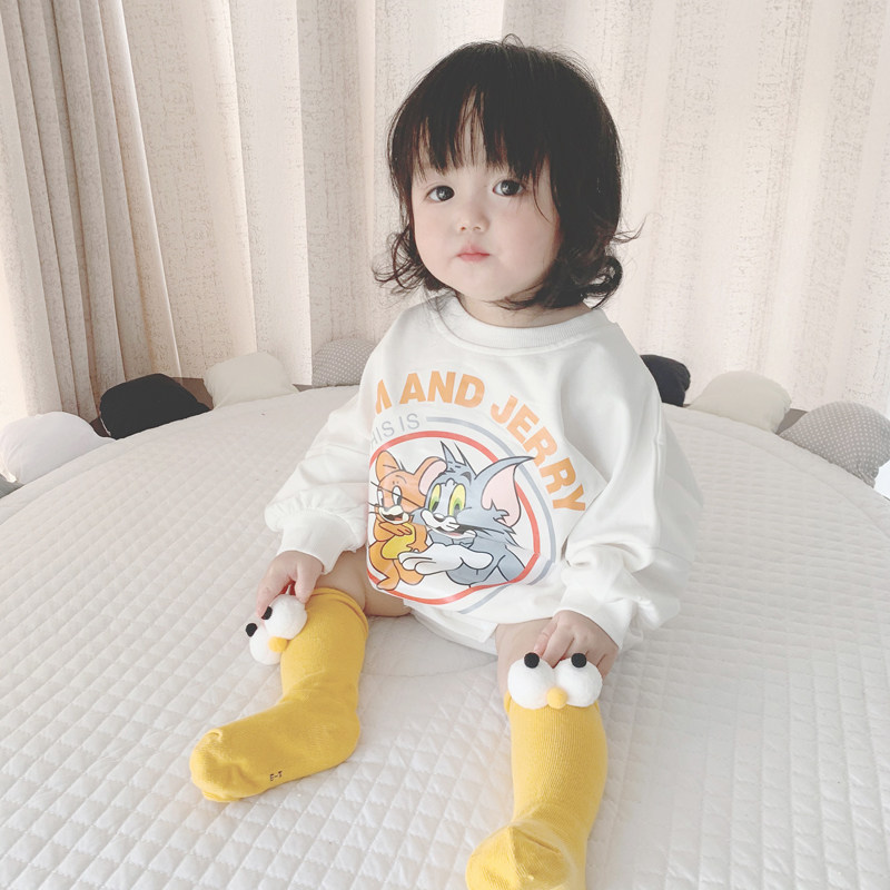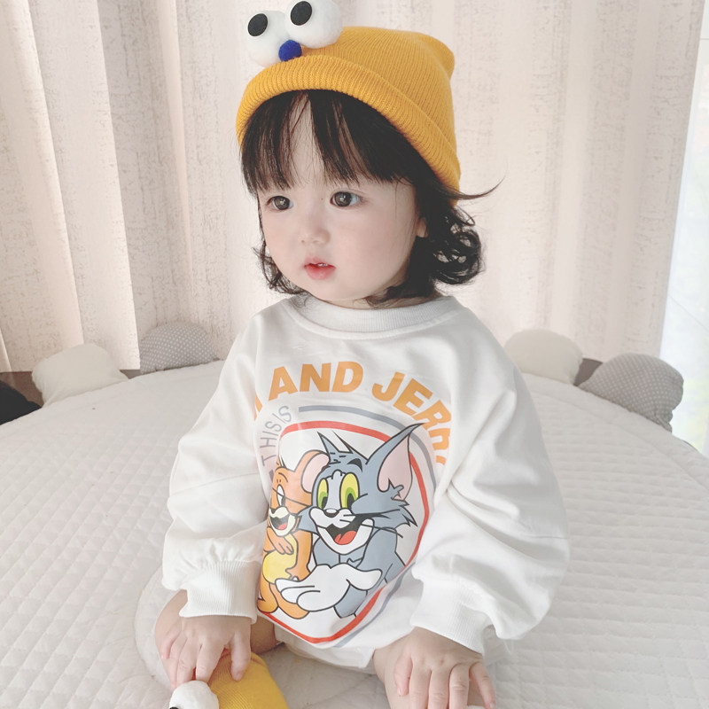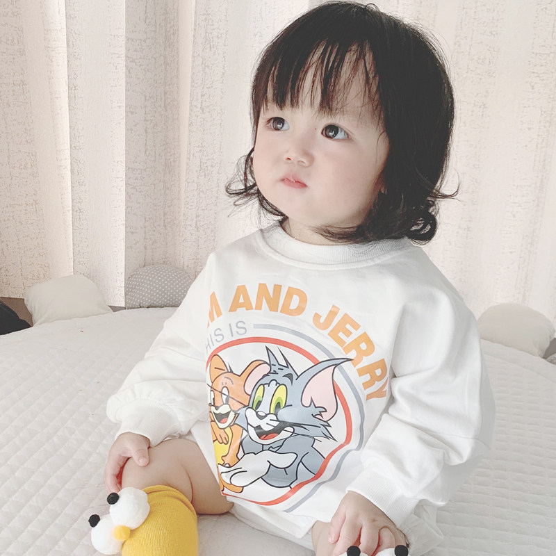 Брендовый демисезонный детский мультяшный утепленный комбинезон, боди подходит для мужчин и женщин для девочек, в корейском стиле, свободный крой