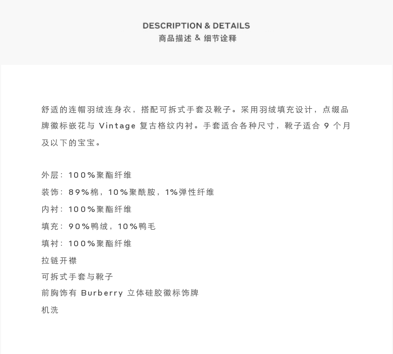 CN20 Burberry Baby Logo Down Tompsuit 80349611