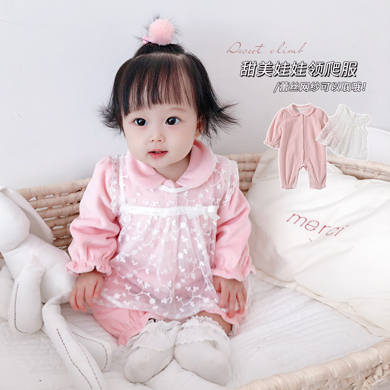Детский осенний демисезонный комбинезон, комплект для девочек, кружевное боди для выхода на улицу, популярно в интернете