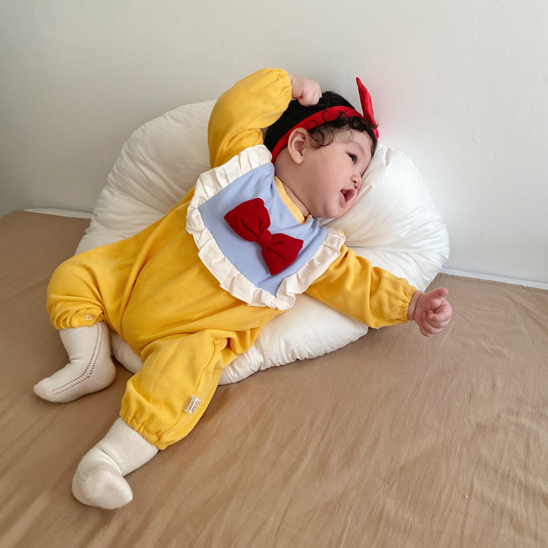 Брендовое весеннее осеннее детское милое комфортное боди для принцессы с бантиком для девочек, в корейском стиле