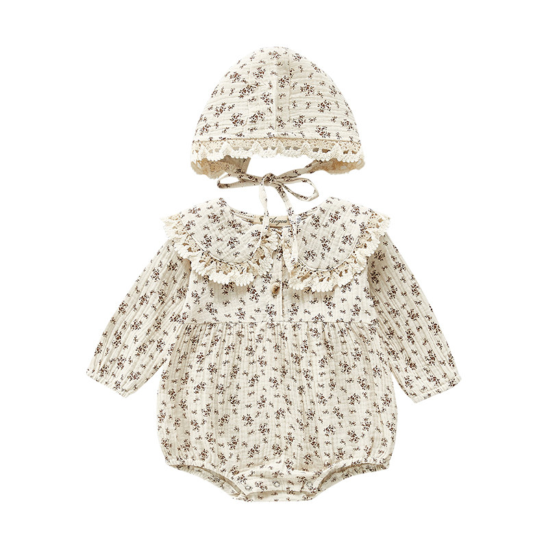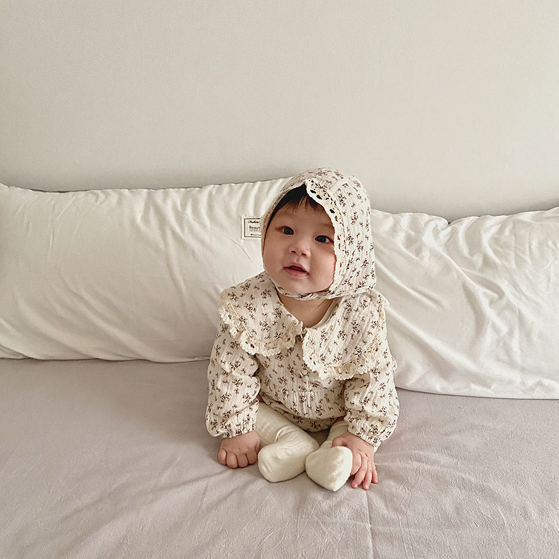 Брендовый детский лонгслив, комбинезон, боди для девочек, шапка, осенний, в корейском стиле, цветочный принт