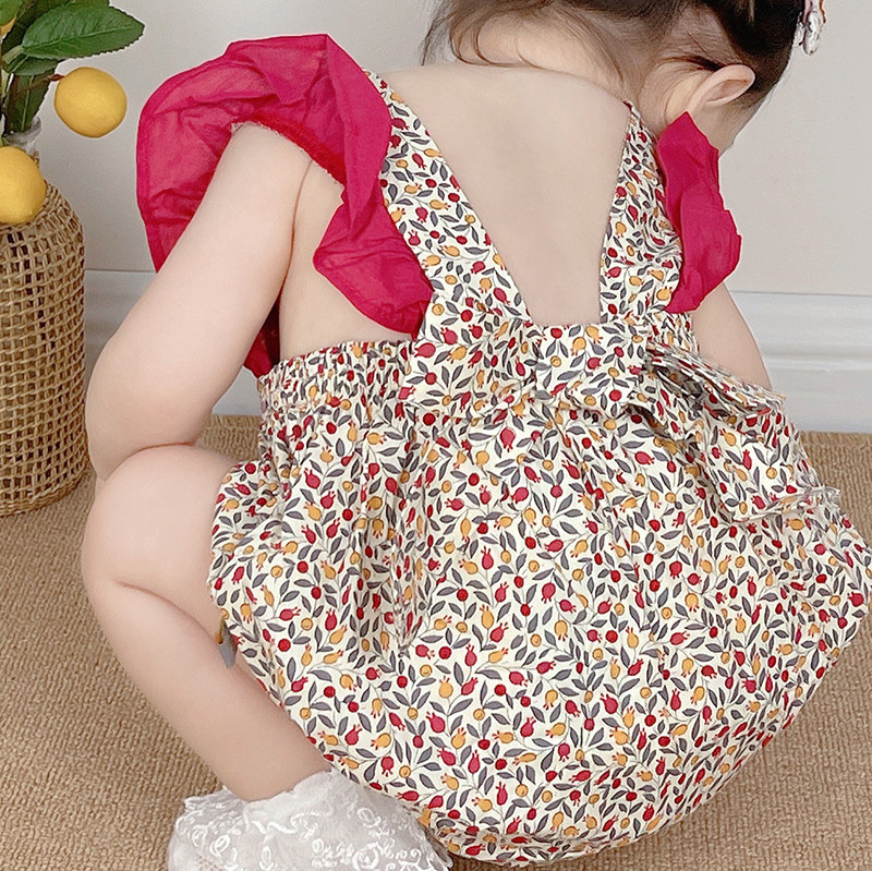 Летние милые подтяжки для девочек, тонкое боди, цветочный принт