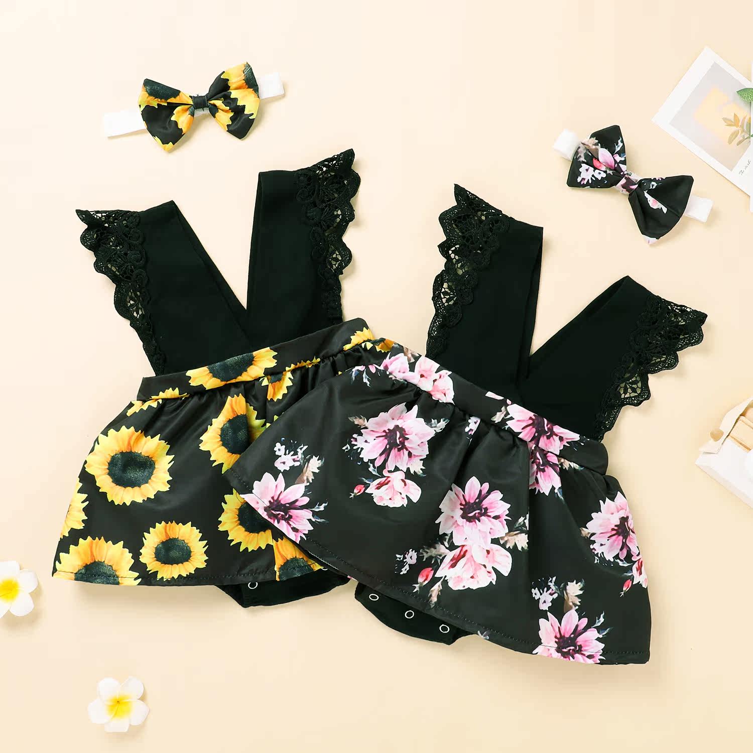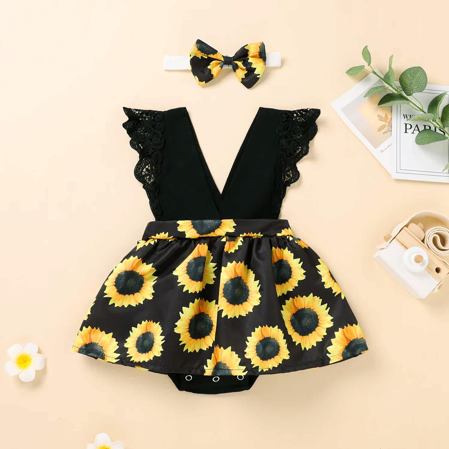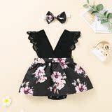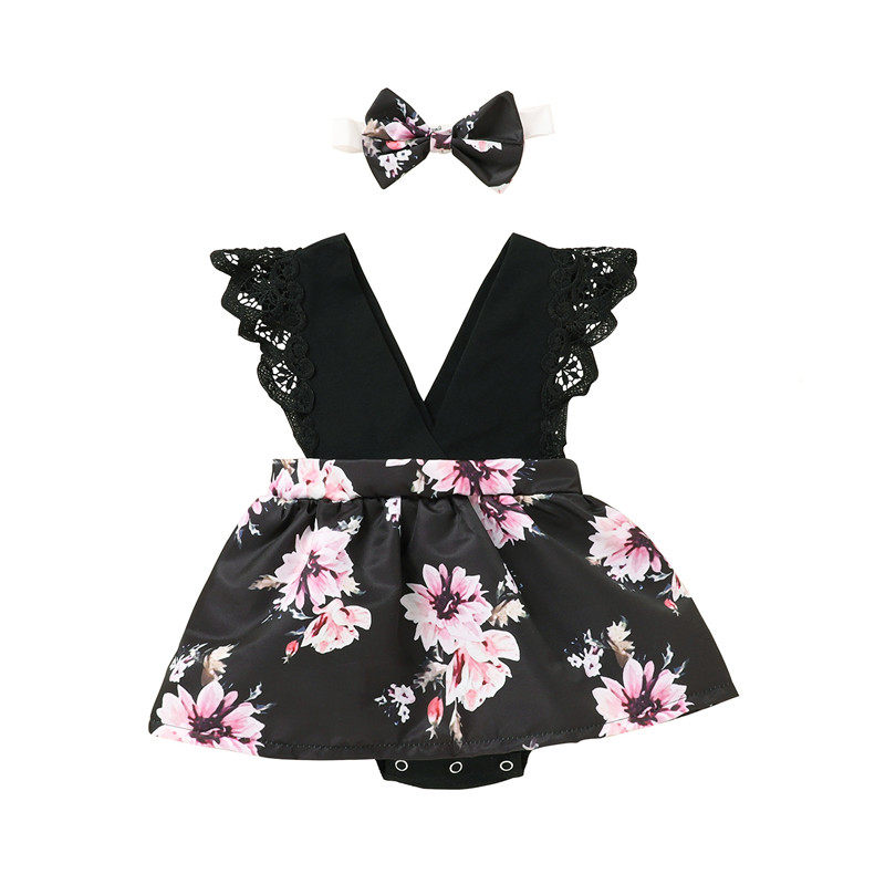 Брендовое летнее милое боди для девочек, платье, повязка на голову, европейский стиль, в цветочек, V-образный вырез, в западном стиле