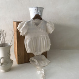 Кружевной наряд маленькой принцессы для девочек для раннего возраста, боди, шапка, короткий рукав, подарок на день рождения