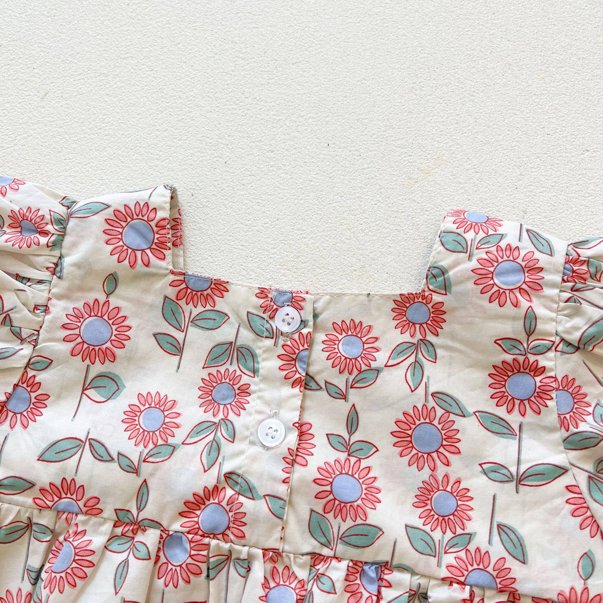 Детский комбинезон, летняя одежда для девочек, тонкое боди для принцессы, популярно в интернете, цветочный принт, короткий рукав