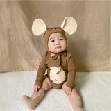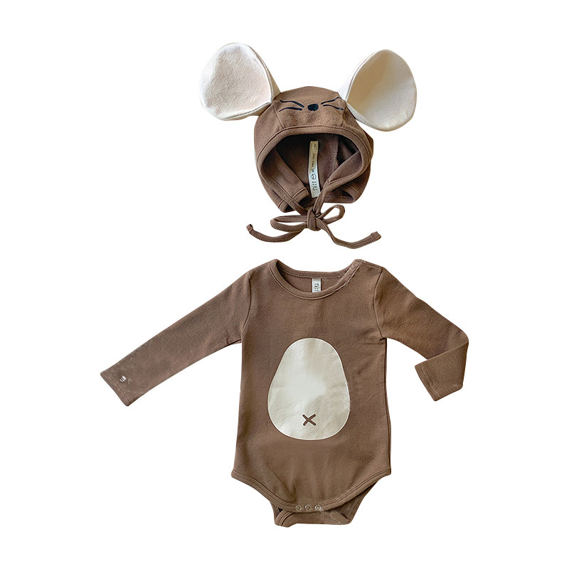Брендовый детский мультяшный комбинезон, боди подходит для мужчин и женщин, шапка для девочек, осенний, в корейском стиле