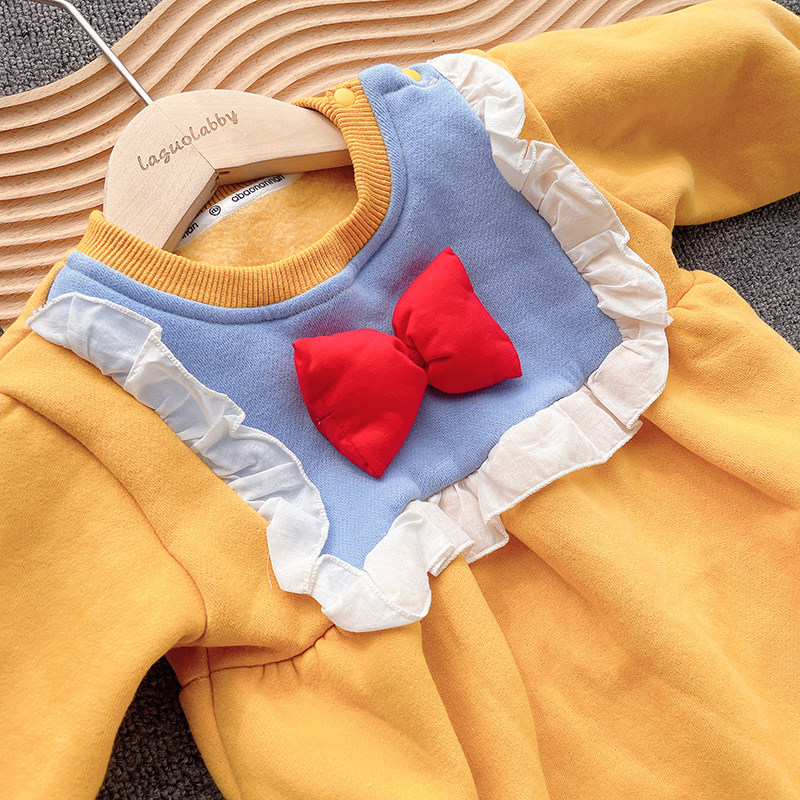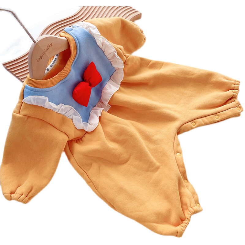 Детский пуховик, наряд маленькой принцессы для девочек, милая толстовка, утепленное боди для выхода на улицу, в корейском стиле