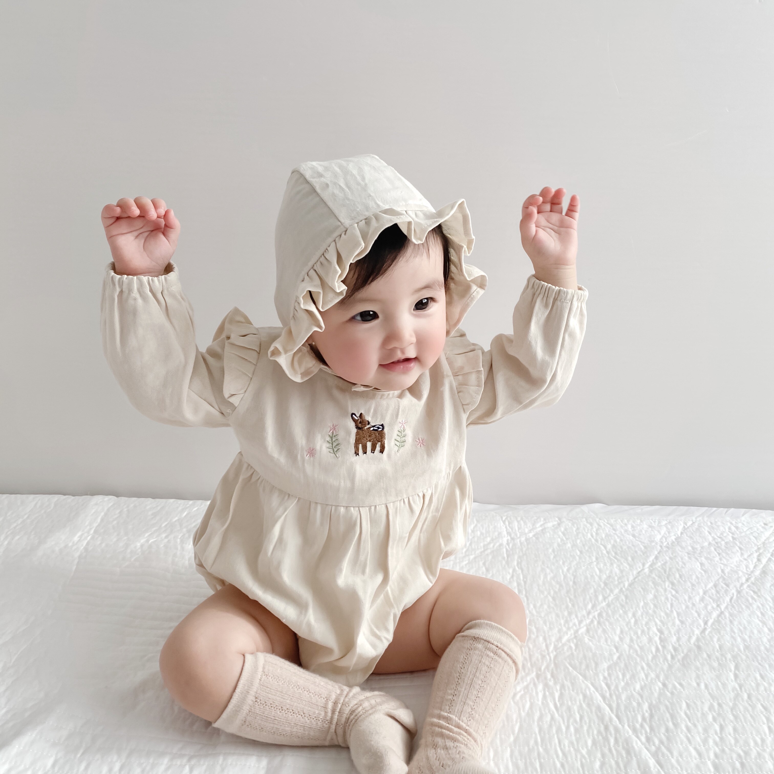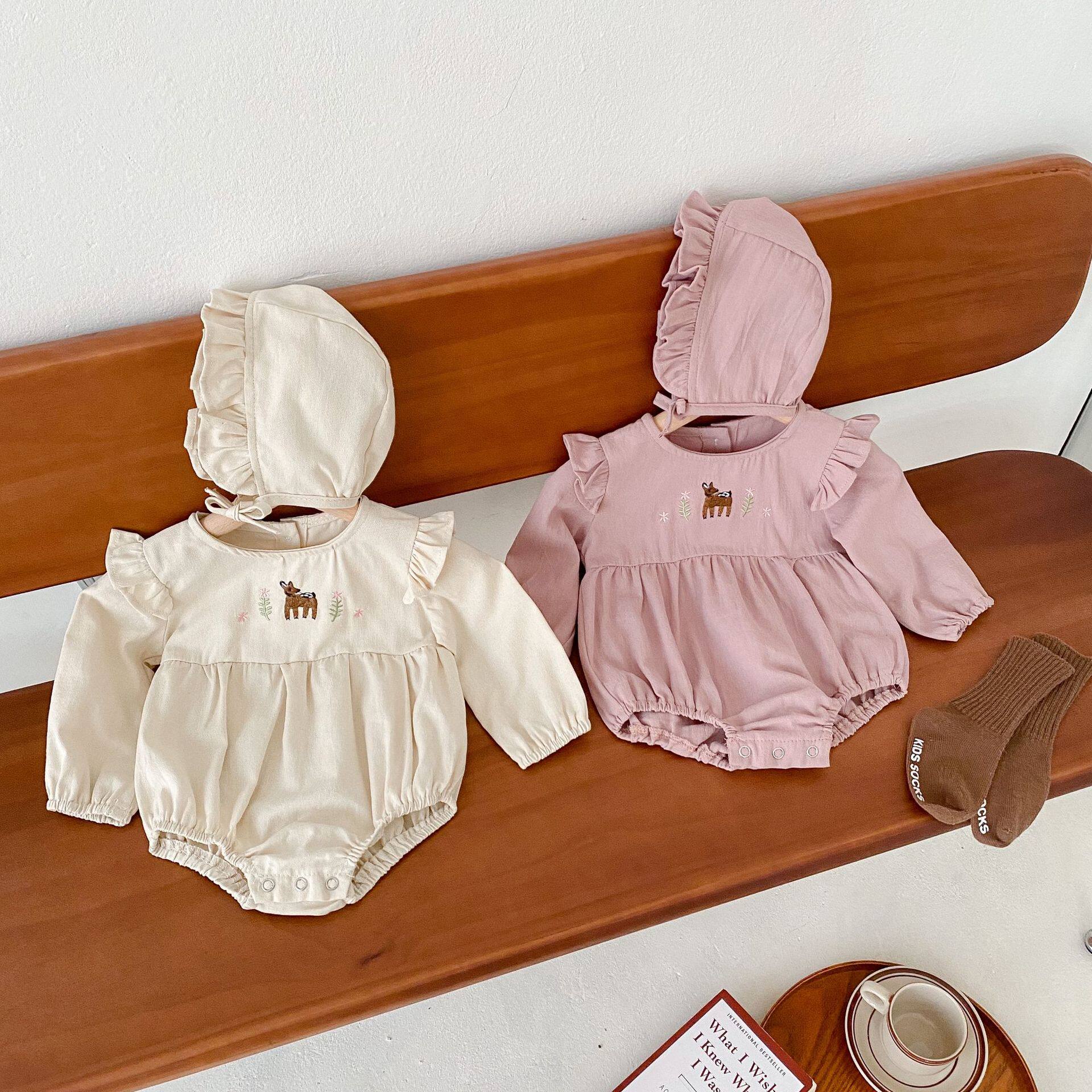 Весеннее осеннее детское боди для девочек для раннего возраста, шапка